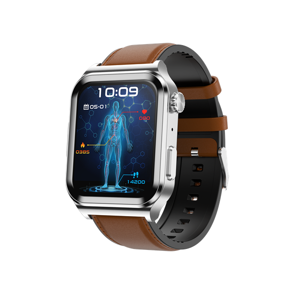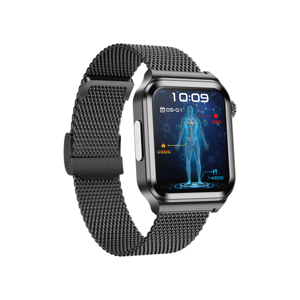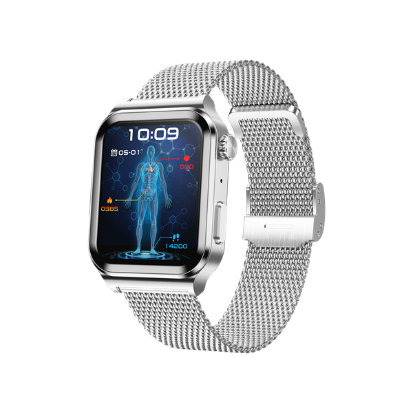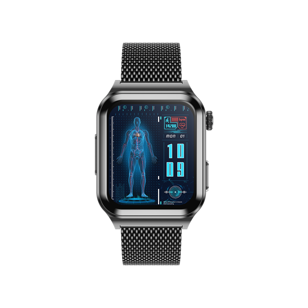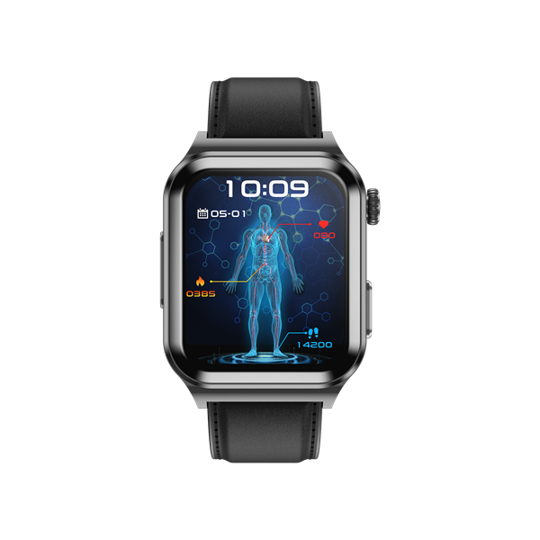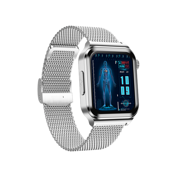 Function points | Intelligent ECG blood glucose health watch, 1.83-inch 240*284 HD touch screen, ECG, chest patch real-time ECG analysis, ECG monitoring, non-invasive blood glucose, heart rate monitoring, blood pressure monitoring, blood oxygen monitoring, multi-exercise mode, custom dial, online multi-dial, exercise recording.Sleep monitoring, Answer and make phone calls, ultra low power consumption and long endurance.Metal alloy case, silent alarm clock, remote photo, music control, sitting reminder, drink water reminder, weather display, countdown, shake to take photos, mobile phone search. APP name: H Band |